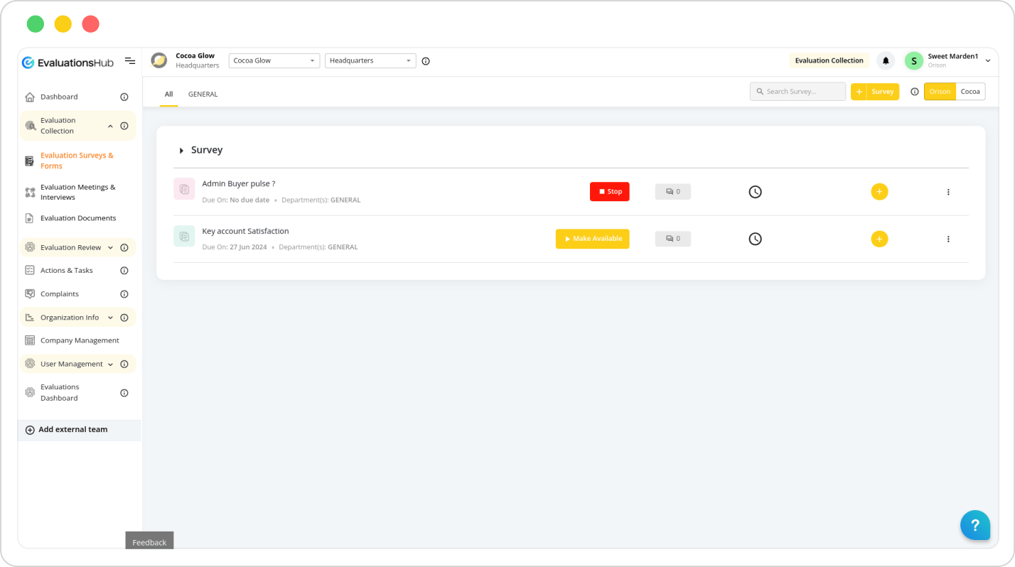 Personalize EvaluationsHub with your company's branding, logo, colours, without EvaluationsHub branding, and secure a custom domain, such as www.yourcompany.evaluationshub.co